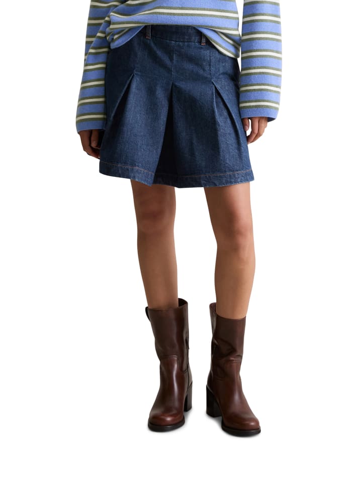 Суперповседневная, довольно короткая, вдохновленная теннисной модой: плиссированная джинсовая мини-юбка от Marc O'Polo DENIM из натуральной жесткой ткани без эластана. Эта стильная модель отличается узким поясом со шлевками для ремня и бесшовной молнией по центру спины, косыми передними карманами и эффектными расклешенными складками. Совет: сочетайте с укороченным трикотажным свитером, объемными лоферами и гольфами.