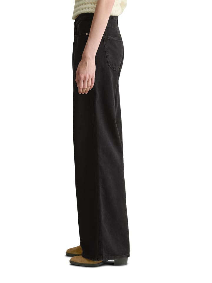 Высокая талия, очень свободный, очень широкий крой и стандартная длина. Это наша новая модель джинсов Anjo свободного кроя. Материал - аутентичная смесь чистого органического хлопка, супермягкого лиоцелла и мягкого модала без эластана. Черный цвет с гармонирующими по цвету швами. Современный крой в привычном пятикарманном стиле. Наша цель - производить самые экологичные джинсы. От сырья до процесса окрашивания и стирки. Следите за нашим стремлением к более ответственному производству. Все за нас.