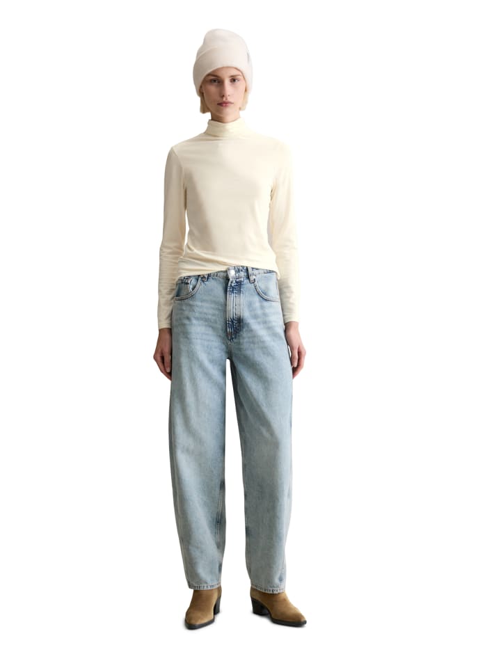 Прочный материал, мягкий деним, новый крой. Джинсы Enni от Marc O'Polo DENIM изготовлены из денима с добавлением волокон европейской крапивы, выращенной, собранной и переработанной в Германии. Они отличаются высокой талией, широкими брючинами и стандартной длиной. Материал не содержит эластана и изготовлен из натуральной смеси чистого органического хлопка. Они светло-голубого цвета с интегрированными складками на сидении, отбеленными участками на бедрах и фирменными контрастными швами. Современный крой с изогнутыми разделительными швами спереди и сзади. Наша цель - производить самые экологичные джинсы. От сырья до процесса окрашивания и стирки. Следите за нашим развитием в сторону более ответственного производства. Это за наш счет.