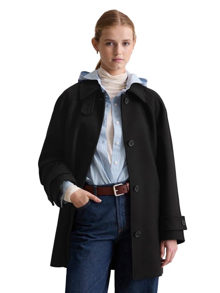 Сочетая в себе стиль и комфорт, это шерстяное пальто - настоящая классика моды, которая мгновенно добавит элегантности любому образу. Наша модель от Marc O'Polo DENIM отличается непринужденным кроем, подкладкой и спортивными рукавами реглан с широкими хлястиками на пуговицах. С точки зрения стиля, оно идеально подходит для повседневного образа со свитером и джинсами или для более элегантного образа с юбкой и блузкой. Высокое содержание шерсти обеспечивает высококачественный внешний вид и долговечность. Это классическое однобортное изделие с широким воротником, пуговицами с логотипом в тон и практичными прорезными карманами. Благодаря хлястику на воротнике его можно закрепить, тем самым защищая от ветра и непогоды.