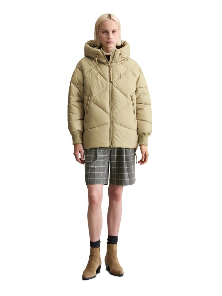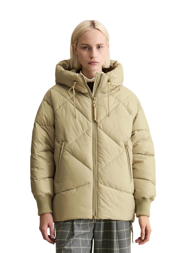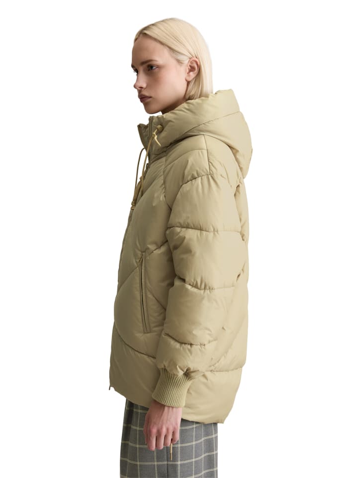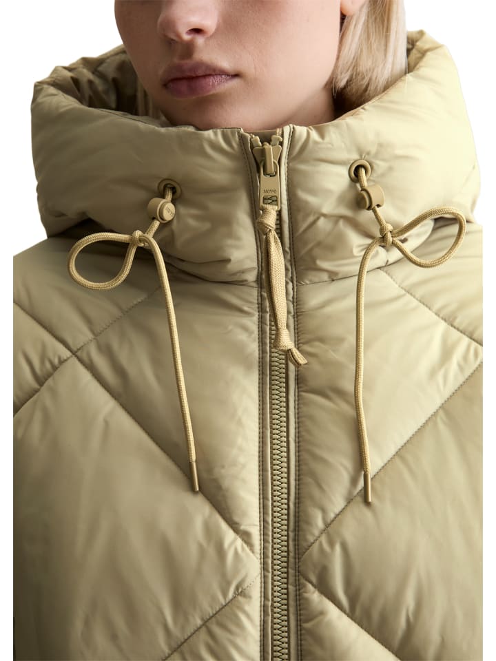 Городской стиль в сочетании с изысканной функциональностью: водоотталкивающая стеганая куртка с капюшоном от Marc O'Polo DENIM предлагает стиль и комфорт, а также богатый дизайн. Благодаря свободному объемному О-образному крою и удлиненной спинке она не только создает современный силуэт, но и обеспечивает дополнительную защиту от холода. Свободный, непринужденный крой и удобные ребристые манжеты. Кулиска и шнурок на подоле и капюшоне обеспечивают оптимальную, регулируемую и индивидуальную посадку. Карманы на молнии отделаны мягким флисом. Защита от ветра и непогоды: двусторонняя молния спереди дополнена узкой ветрозащитной планкой. Стеганая куртка с узором XL diamond наполнена переработанными волокнами, что обеспечивает отличную теплоизоляцию и снижает воздействие на окружающую среду. С контрастным принтом логотипа на внутренней стороне.