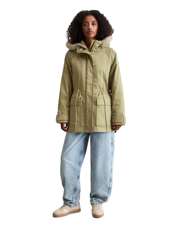 Если есть что-то, чего мы с нетерпением ждем этой осенью и зимой, так это новая зимняя парка от Marc O'Polo DENIM с ее обновленным дизайном. Эта повседневная модель oversize может похвастаться изысканным кроем с косыми боковыми швами, застегивающимися на кнопки, а также уютными плюшевыми деталями на регулируемом капюшоне и планке. Куртка в стиле парки имеет спортивные рукава реглан с регулируемыми хлястиками и прочную двустороннюю молнию спереди с двумя ветрозащитными планками: одна под молнией, другая над ней. Это защищает от ветра, дождя и штормов. Талия на шнурке позволяет подогнать куртку по фигуре и изменить силуэт. Большие накладные карманы с клапанами вместят все необходимые повседневные вещи. Внутренняя часть имеет легкую стеганую подкладку.