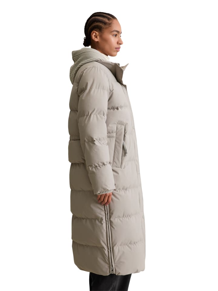 Функциональный, легкий, теплый и с множеством функций для активного отдыха: повседневный арктический пуховик с водоотталкивающей отделкой из переработанного полиэстера. Эта модель Marc O'Polo DENIM отличается просторным кроем, искусной отделкой и съемным трикотажным капюшоном, двумя потайными карманами на молнии и мягкими трикотажными манжетами. Изнанка так же практична, как и снаружи: супермягкая подкладка, простеганная в классических камерах, такие полезные детали, как высокие боковые молнии для открывания боковых швов, внутренний шнурок для регулировки ширины на талии и две ветрозащитных планки на передней молнии. Полезная информация: эта модель наполнена шариками полиэфирного волокна. Это легкое и пушистое волокно в форме маленьких шариков сохраняет эластичность в течение длительного времени и по свойствам сравнимо с пухом. Каждый шарик из полиэфирного волокна изготовлен из переработанных пластиковых бутылок, что превращает отходы в согревающий комфорт.