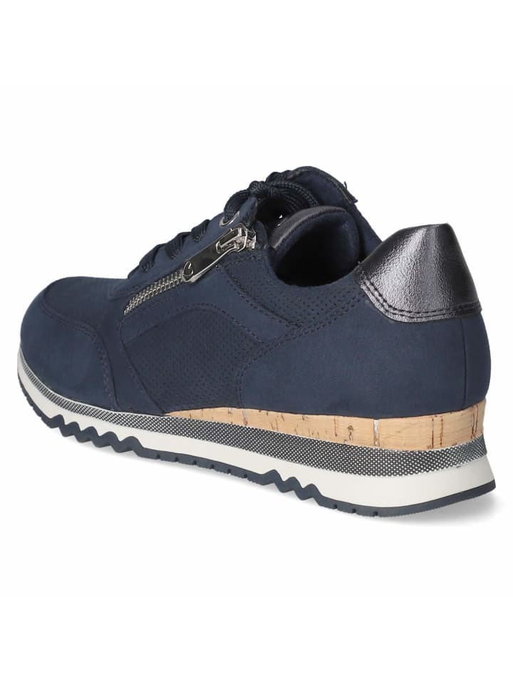 Эти низкие кроссовки Marco Tozzi сочетают в себе спортивный шик синего цвета и продуманный дизайн, выполненный из веганских материалов. Верх из текстиля и синтетического материала украшен перфорацией, серебристыми деталями и легким металлическим блеском, а подошва с имитацией пробки добавляет естественный штрих. Шнуровка в сочетании с дополнительной молнией обеспечивает быстрое надевание и плотную посадку; усиленные носок и пятка повышают прочность. Удобная съемная стелька позволяет использовать собственные стельки при необходимости. Гибкая противоскользящая подошва обеспечивает надежное сцепление, а закругленный носок и стандартная посадка гарантируют комфорт. Модный совет: Особенно гармонично смотрятся с укороченными джинсами и белой рубашкой или как женственный контраст со струящимся пастельным платьем миди.