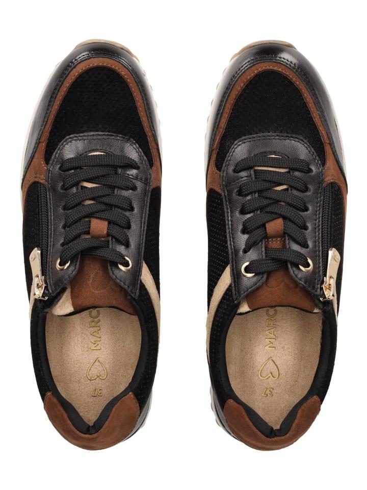 Эти модные кроссовки от Marco Tozzi сочетают в себе комфорт и элегантный дизайн. Верх из высококачественной смеси кожи и текстиля придает обуви не только изысканный вид, но и прочность и долговечность - как с повседневными джинсами, так и со спортивным элегантным образом. Благодаря шнуровке и практичной молнии кроссовки легко надевать и снимать, а также оптимально регулируются по ноге. Мягкая стелька адаптируется к форме стопы, обеспечивая максимальный комфорт при каждом шаге.