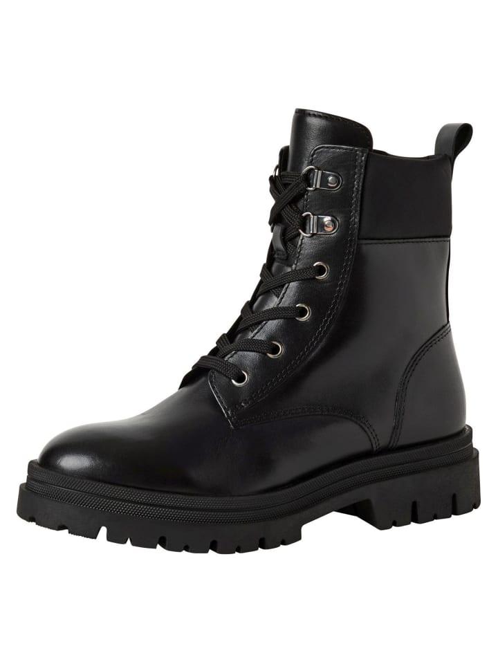 С этими ботильонами от MARCO TOZZI вы покорите зиму стильно и с комфортом! Высококачественное сочетание кожи и текстиля не только придает обуви изысканный вид, но и обеспечивает удобную посадку - идеально для холодных дней. Благодаря теплой подкладке вы будете наслаждаться уютом и теплом даже при низких температурах, а удобный блочный каблук высотой 45 мм и подошва-платформа толщиной 20 мм гарантируют надежный и модный вид. Круглый носок подчеркивает классический дизайн, который приобретает дополнительную индивидуальность благодаря сочетанию молнии и шнуровки, обеспечивая оптимальную поддержку. Инновационная технология FEEL ME адаптируется к вашей индивидуальной форме стопы и дарит приятный комфорт даже при длительном ношении. С высотой голенища 16 см эти ботильоны не только обеспечивают защиту, но и создают модный образ для осени и зимы. Зимние образы - идеально сочетаются с узкими джинсами, трикотажными платьями или повседневным пальто. Универсальный компаньон, гармонично сочетающий в себе модные тенденции и функциональность.