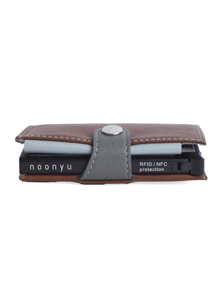 Мини-кошелек Noonyu Single Leather с функцией выдвижения для кредитных карт от Margelisch изготовлен из переработанной натуральной кожи. Он также оснащен алюминиевым корпусом с функцией блокировки RFID/NFC и функцией выдвижения. Алюминиевый корпус вмещает до семи кредитных карт. В кошельке также есть отделение для монет и купюр. Все необходимое помещается в самом компактном корпусе! - производство amfori BSCI - Кошелек из переработанной кожи - отделение для RFID-карт с функцией выдвижения - отделения для монет и купюр - В/Ш/Г 10 / 6,5 / 2 см
