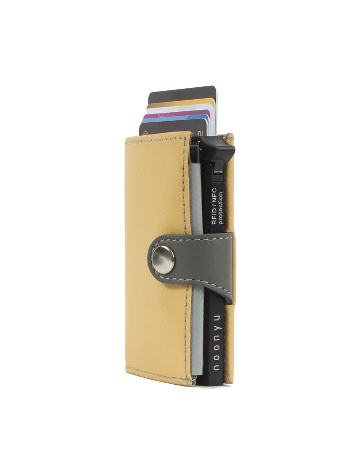 Мини-кошелек Noonyu Single Leather с функцией выдвижения для кредитных карт от Margelisch изготовлен из переработанной натуральной кожи. Он также оснащен алюминиевым корпусом с функцией блокировки RFID/NFC и функцией выдвижения. Алюминиевый корпус вмещает до семи кредитных карт. В кошельке также есть отделение для монет и купюр. Все необходимое помещается в самом компактном корпусе! - производство amfori BSCI - Кошелек из переработанной кожи - отделение для RFID-карт с функцией выдвижения - отделения для монет и купюр - В/Ш/Г 10 / 6,5 / 2 см