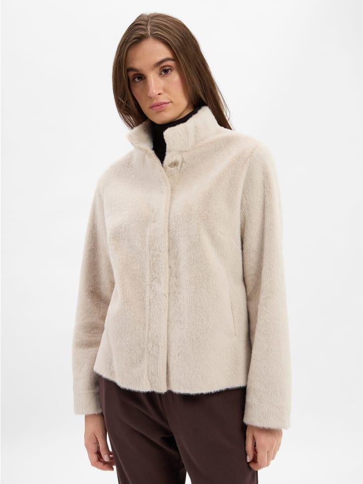 Делает образ небрежно-стильным: пуристическая переходная куртка Marie Lund из мягкого искусственного меха с воротником-стойкой, потайными кнопками и прорезными карманами.