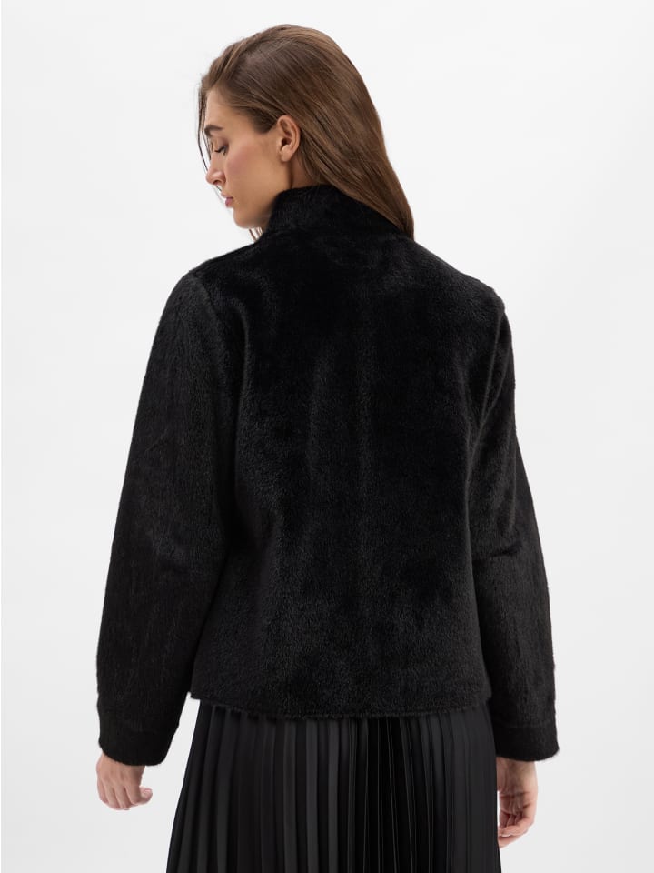 Делает образ небрежно-стильным: пуристическая переходная куртка Marie Lund из мягкого искусственного меха с воротником-стойкой, потайными кнопками и прорезными карманами.