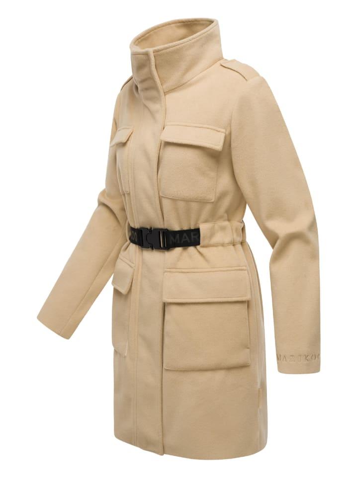 ПОКРЫТИЕ: Прямой силуэт обеспечивает большой комфорт при ношении, а короткое пальто достигает примерно середины бедра. Поясной ремень с высококачественной пряжкой подчеркивает пропорции, не стесняя, а также дает возможность индивидуально подогнать посадку.