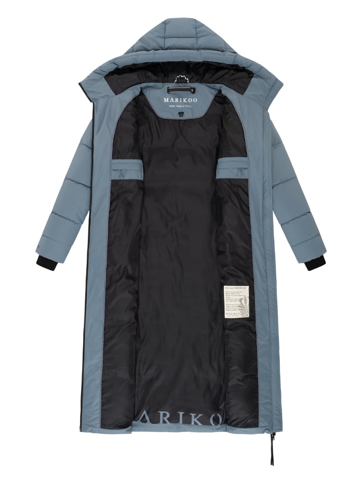 - Длинное женское стеганое пальто со светоотражающими деталями