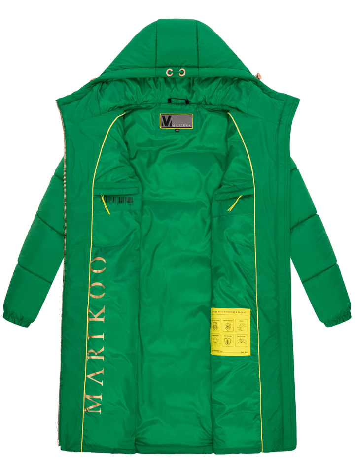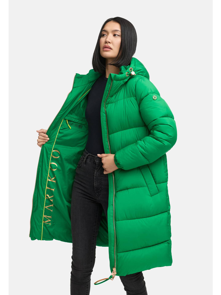Это стеганое пальто впечатляет не только своим элегантным дизайном с изящными акцентами цвета розового золота, но и своей исключительной пригодностью для холодных дней. Незаменимая вещь для тех, кто ценит шикарную и функциональную моду осени и зимы.