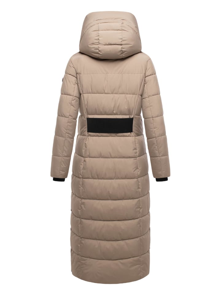 - Длинное женское зимнее стеганое пальто с капюшоном
