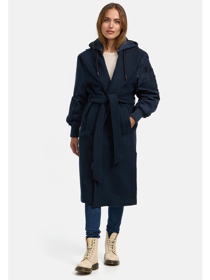 ВНЕШНИЙ ВИД: Это переходное пальто впечатляет своей современной интерпретацией классического пальто. Сочетание материалов и свободные рукава добавляют стильные акценты, а завязывающийся пояс придает образу женственность. Идеально подходит для повседневно-элегантного образа.