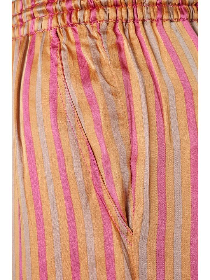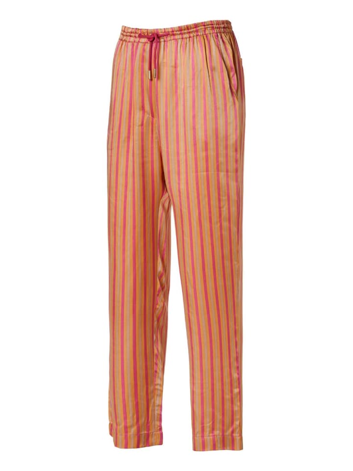 Новинка коллекции Caroline Tensen - яркие брюки средней длины с ярким оранжево-розовым полосатым принтом, идеально подходящие для лета. Эти полосатые брюки с розовым шнурком для регулировки посадки, двумя практичными карманами и гладкими, струящимися брючинами сочетают в себе стиль и комфорт. Брюки Florida сочетают полосатый принт с легким блеском модала, что придает им непринужденный, но изысканный вид. Для завершения образа дополните их подходящей блузкой California. Эти брюки изготовлены из 100% модала для максимального комфорта и роскошного вида.