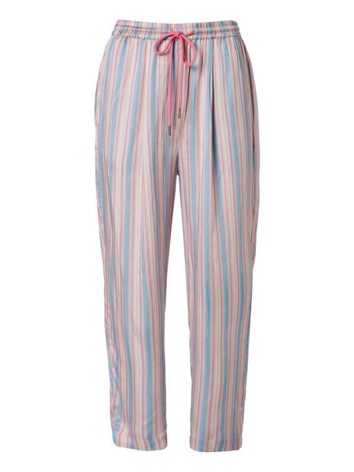 Эти стильные брюки прямого кроя из последней коллекции Caroline Tensen украшены вертикальными полосками в красивых летних пастельных тонах. Полосатые брюки имеют розовый пояс на шнурке. Вы можете носить их более облегающе или более свободно, как вам больше нравится! Широкие брюки имеют два передних кармана и струящиеся штанины. Брюки Seattle сочетают в себе полосатый рисунок с мягкой модальной тканью, что придает дизайну непринужденный вид. Но свежие пастельные цвета также делают их идеальными для шикарного образа. Сочетайте эти брюки с подходящей блузкой Memphis, чтобы создать простой и стильный повседневный наряд и скоординированный образ. Эти эффектные брюки сочетают в себе непринужденный комфорт с ноткой гламура, что делает их обязательным элементом любого модного гардероба. Сочетайте их, например, со стильными лодочками телесного цвета, и вы готовы к выходу! Предпочитаете повседневный образ? Но эти брюки также идеально подходят для спокойного дня дома на диване. Брюки Seattle изготовлены из 100% модала и обеспечивают максимальный комфорт и роскошный вид. Модал очень мягкий, гладкий и эластичный на ощупь и имеет легкий блеск.