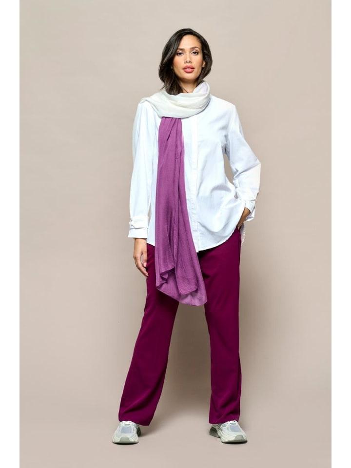 Откройте для себя этот лимитированный шарф от Марта Виссера с красивым градиентом цвета. Он варьируется от кремового до темно-ягодного. Шарф свободного кроя сшит из воздушной вискозы, что придает ему гладкий и легкий вид. Стильное дополнение к вашей коллекции! Этот шарф размером примерно 1 х 1,5 метра удобного размера и идеально сочетается с другими вещами.