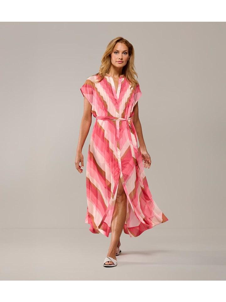 Платье с принтом Ricky из летней коллекции Mart Visser - настоящая приманка для глаз и настоящая находка для модниц. Богатые детали и игривый принт делают это платье модным дополнением к любому летнему гардеробу. Этот розовый полосатый крой с диагональными полосками светло-розового, темно-розового, кремового и песочного цветов создает свежий и женственный образ. Платье застегивается на потайные пуговицы и имеет соответствующий пояс для элегантной талии. Безрукавка доходит до щиколотки, а тонкие складки спереди и сзади позволяют ткани грациозно двигаться. Носите это универсальное платье застегнутым на пуговицы для создания классического образа или расстегнутым как длинная блузка поверх белого топа и джинсов. Также идеально подходит в качестве воздушного кафтана поверх купальника. Эта красивая летняя вещь не должна отсутствовать в вашем гардеробе! Модный совет: обратите внимание на блузку с таким же стильным принтом.