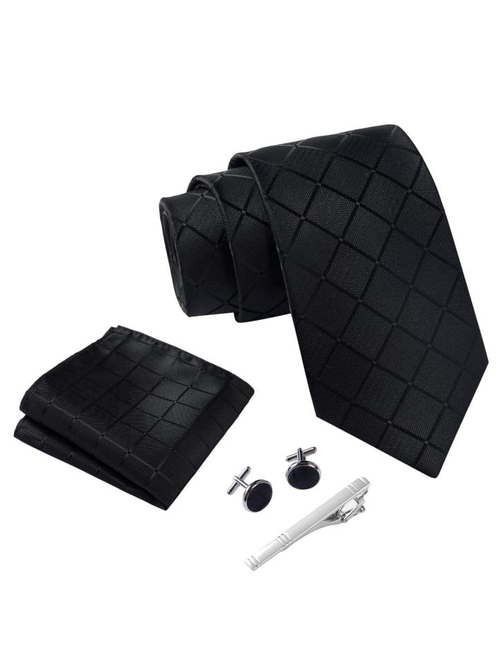 - Подарочный набор 5 в 1: галстук с нагрудным платком, запонками и зажимом для галстука