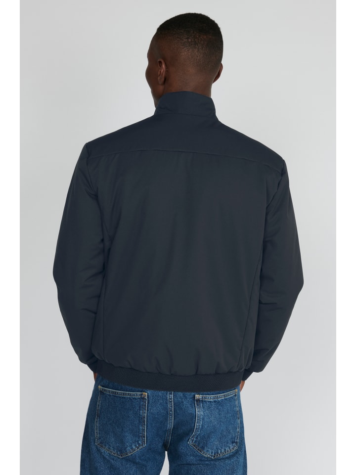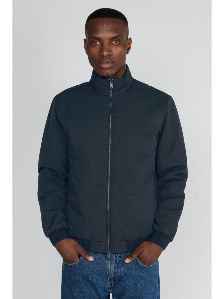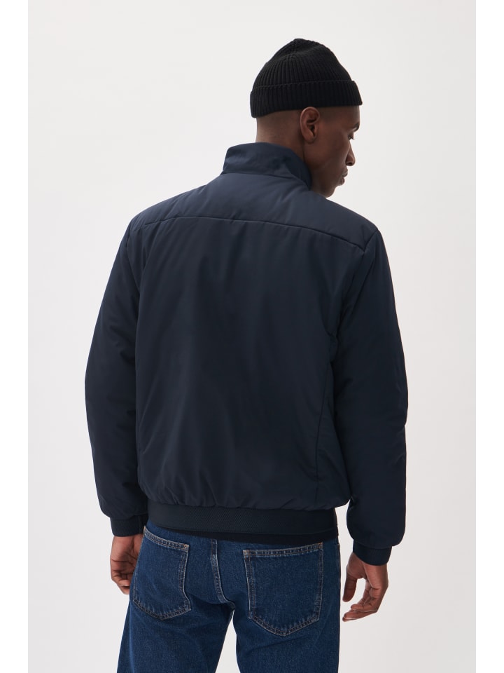 Мужская куртка-бомбер прямого кроя с воротником-стойкой, молнией спереди и ребристыми манжетами и подолом. Универсальная и удобная.