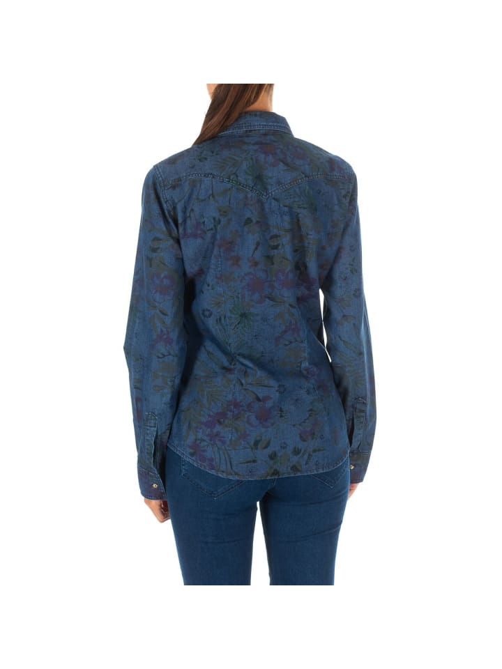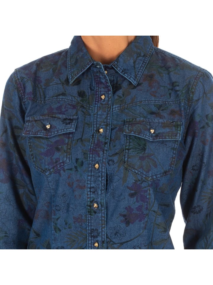 Джинсовая рубашка с длинными рукавами.