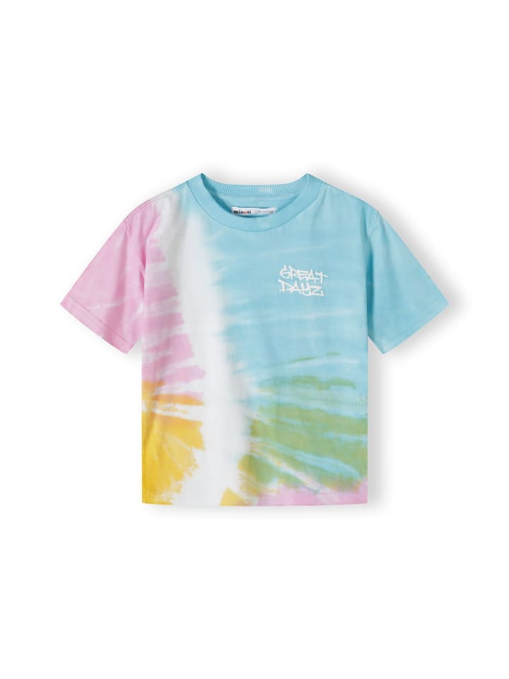 - Футболка с эффектным принтом тай-дай, короткими рукавами, круглым вырезом и принтом на груди.