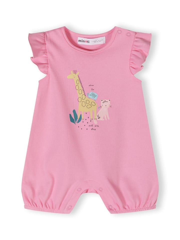 Комбинезон с оборками, короткими штанинами и эластичными манжетами. Застежка-кнопка спереди значительно облегчает переодевание малыша. Изготовлен из мягкой хлопковой ткани с яркими и милыми узорами.