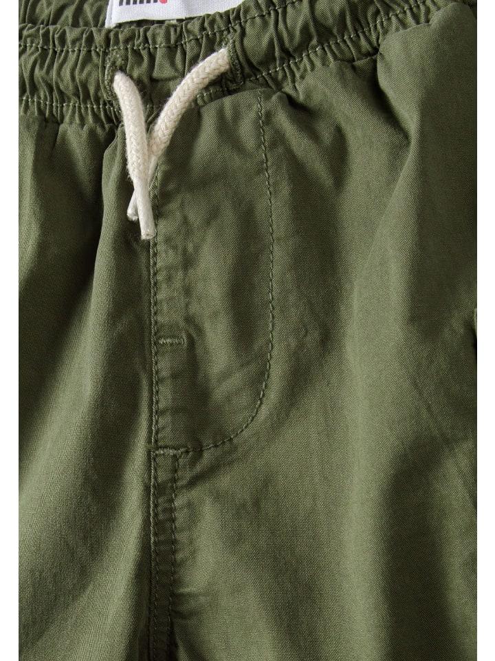 Шорты из хлопковой ткани. Эластичный пояс со шнурком. Большие боковые карманы и декоративная нашивка.