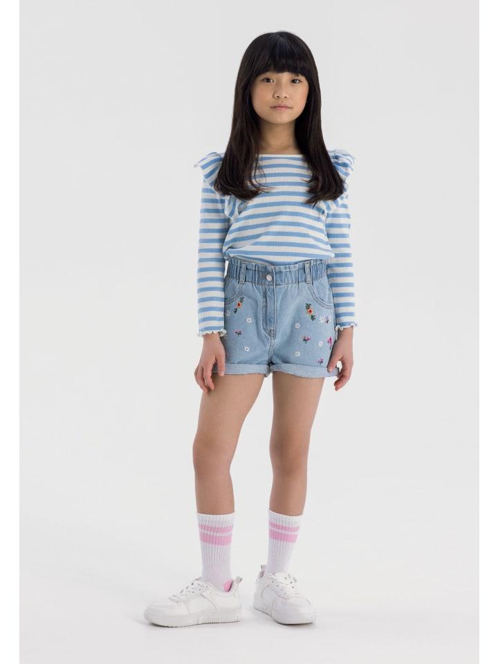 Джинсовые шорты с изящной вышивкой. Эластичный пояс и манжеты на штанинах. Карманы спереди и сзади.