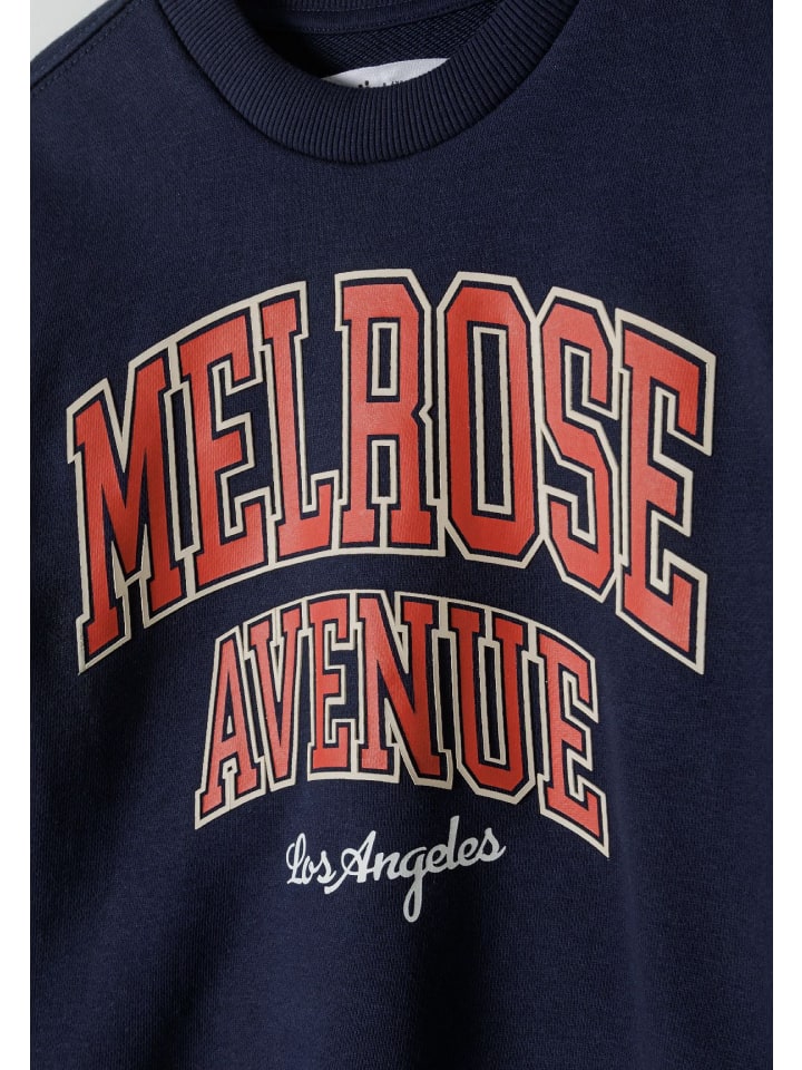 Толстовка из мягкой хлопковой ткани. Круглый вырез, рукава и подол с ребристыми манжетами. Декоративный принт спереди и нашивка на рукаве.