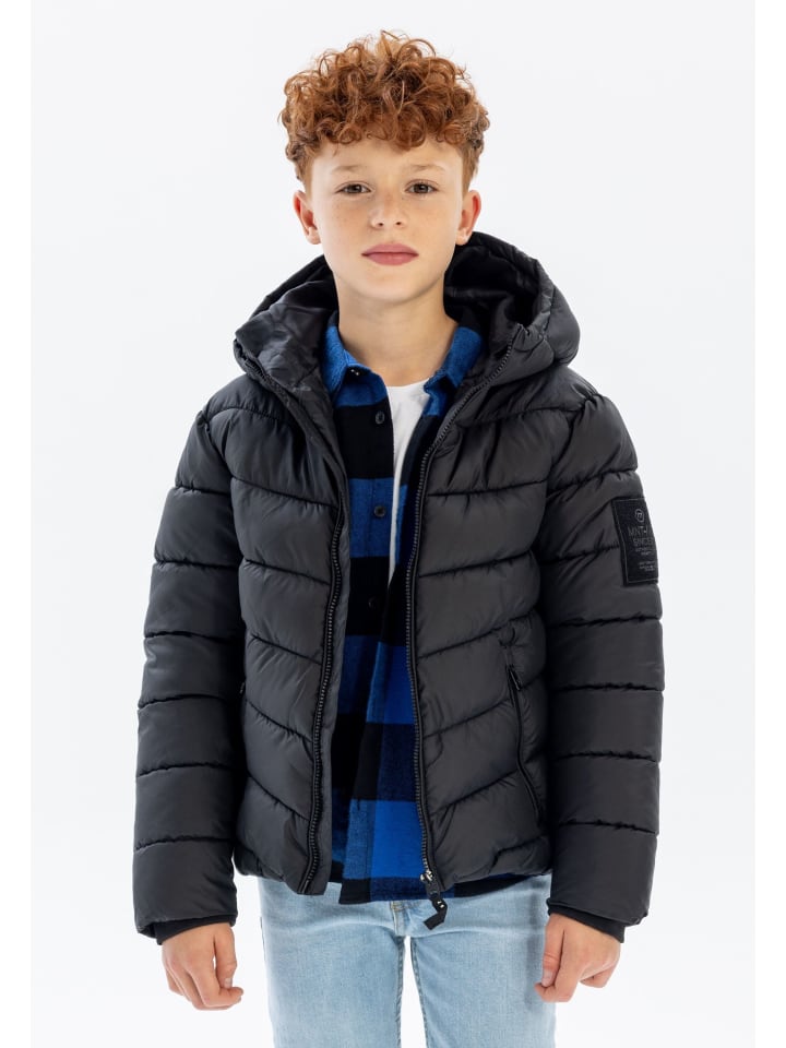 Эта великолепная стеганая куртка для мальчиков впечатляет своей функциональностью и современным дизайном. Молния спереди и несъемный капюшон обеспечивают защиту и комфорт. Практичные боковые карманы на молнии. Светоотражающий принт на пояснице улучшает видимость вашего ребенка. Рукава и подол на резинке.