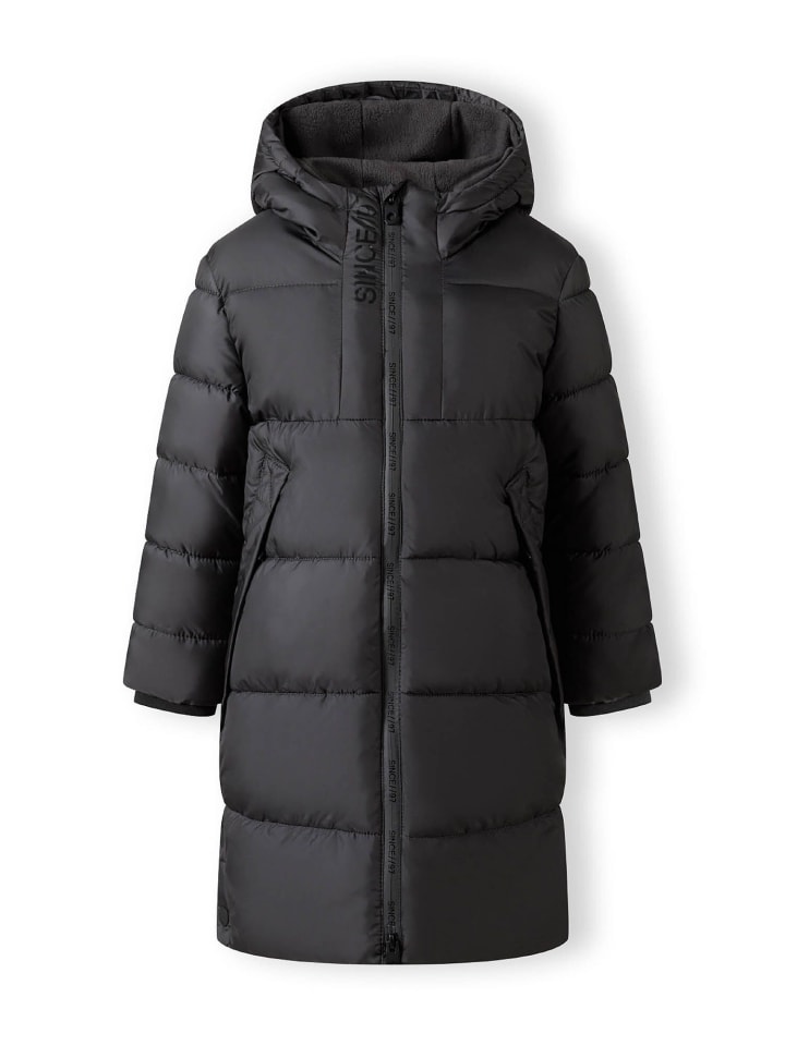 - Длинная утепленная куртка с двусторонней молнией и модным принтом.