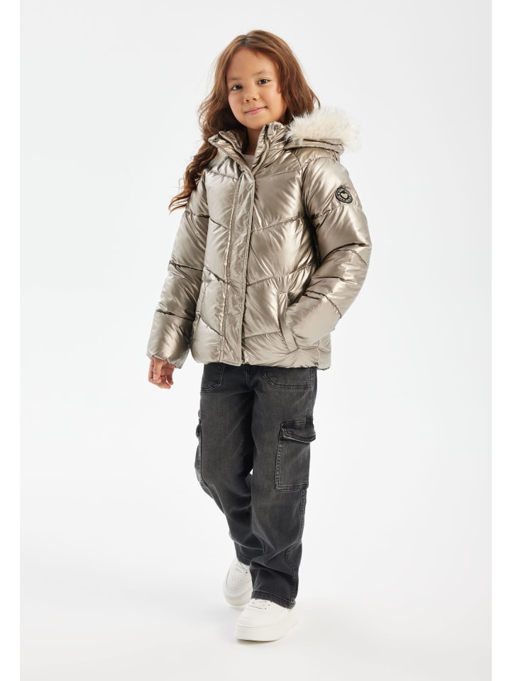 Куртка выполнена из прочной ткани с плюшевой подкладкой, которая хорошо защищает от холода. Искусственный мех на капюшоне и нашивка на рукаве придают куртке особый характер. Удобный крой и модные детали делают куртку уютной и стильной.