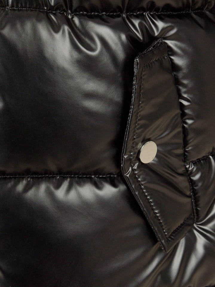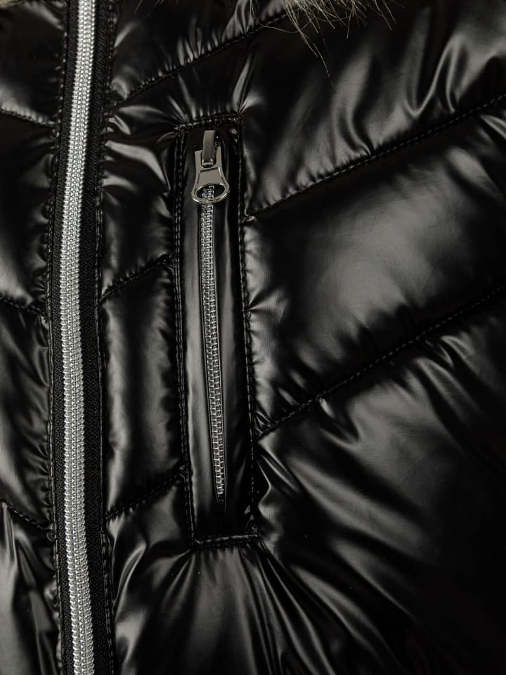 - Эта удлиненная куртка с металлическим эффектом подойдет к любому образу.