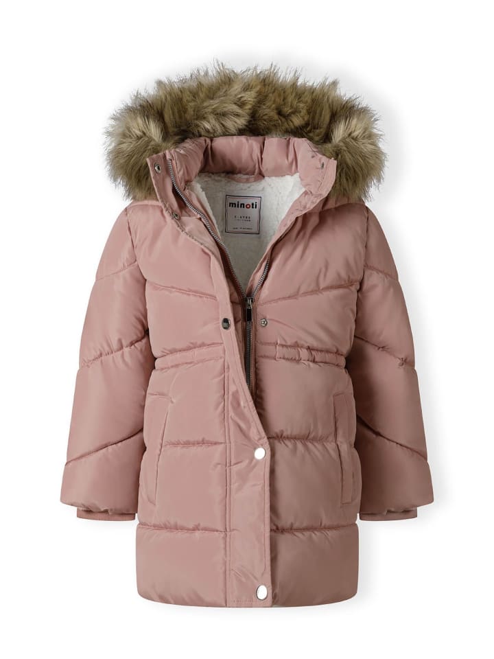 Эта стеганая зимняя куртка для девочек сочетает в себе функциональность и стиль. Двойная застежка на молнии и кнопках обеспечивает хорошую защиту от холода. Мягкая подкладка и капюшон согревают. Меховая отделка капюшона отстегивается при необходимости. Манжеты и высокий воротник обеспечивают дополнительную защиту от ветра и холода. Приталенный крой и модная нашивка в виде сердца на рукаве создают по-настоящему модный образ.