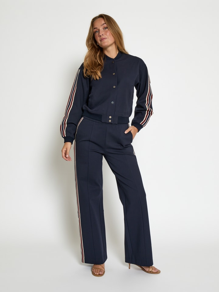 Представляем куртку-бомбер MSMarabella, в которой классический дизайн сочетается с современной элегантностью. Эта куртка-бомбер отличается изысканным вырезом, идеально подобранным для того, чтобы обеспечить тепло и стиль, сохраняя при этом стройный силуэт. Рукава, украшенные яркими полосками, добавляют живости, дополняя изысканную структуру. Изготовленная из смеси высококачественной вискозы, нейлона и эластана, она слегка тянется и дарит роскошные ощущения, обеспечивая комфорт и долговечность. Ряд кнопок украшает переднюю часть, придавая ей свежий, строгий вид, одновременно спортивный и элегантный. Сочетайте эту куртку с любимыми джинсами для повседневного образа или дополните элегантный вечерний наряд элегантным платьем.