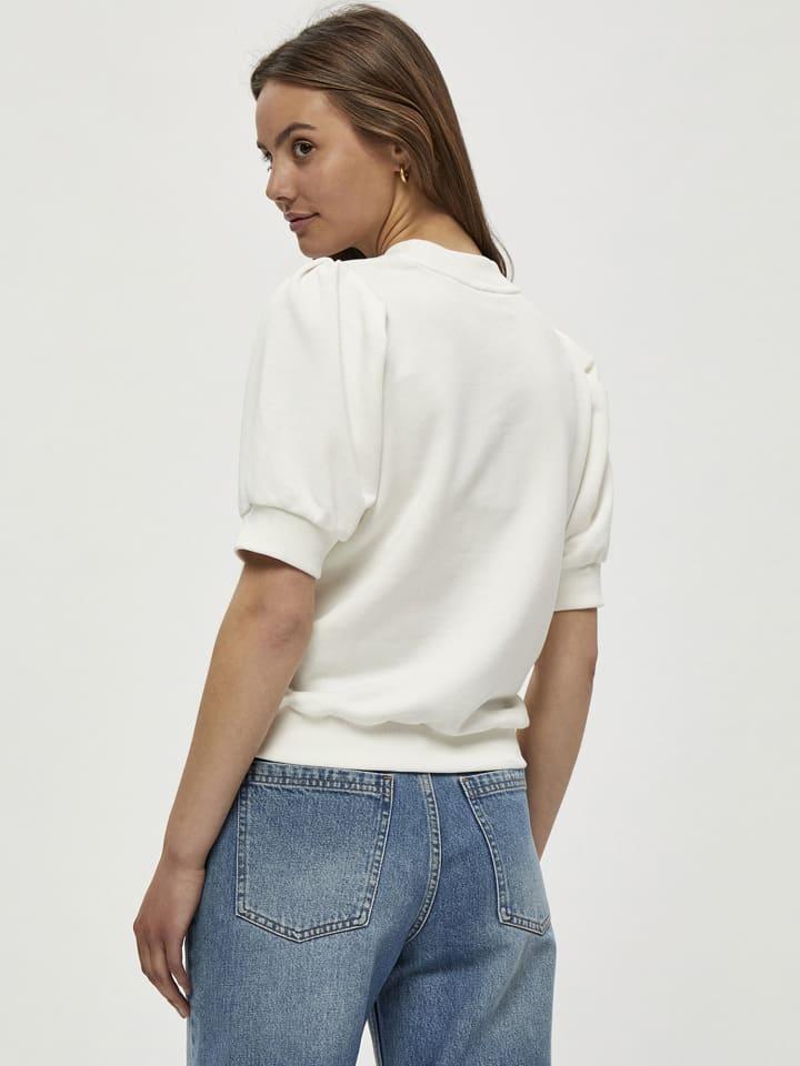 Эта классная толстовка с короткими рукавами украшена красивыми складками на плечах, которые придают рукавам приятный объем. В остальном крой простой: ребристые манжеты на горловине, рукавах и нижнем крае. Легко сочетается с любым гардеробом!