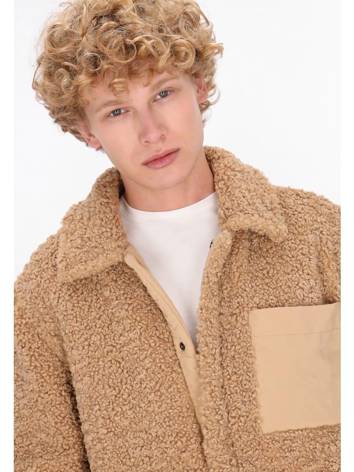 Мягкая и удобная мужская куртка прямого кроя, идеально подходящая для холодных дней. Изготовлена из пушистого материала тедди, который обеспечивает исключительный комфорт при ношении и приятное тепло. Куртка имеет классический воротник, длинные рукава и застежку на пуговицы, что создает классический образ. Дополнительный нагрудный карман добавляет практичности и подчеркивает стиль. Выдержанная в гладком, однородном крое, куртка идеально вписывается в повседневный и молодежный стиль, сочетая комфорт с классикой. Она входит в коллекцию верхней одежды.