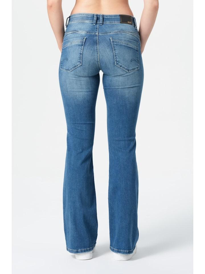 Женские расклешенные джинсы Mary Deal Blue - элегантный силуэт 70-х для современного стиля. Джинсы Mary Flared в цвете Deal Blue идеально воплощают ретро-тренд возрождения благодаря своему аутентичному силуэту 70-х. Эти стильные расклешенные джинсы впечатляют своим эффектным, сильно расклешенным кроем от колена вниз, придавая ногам элегантно удлиненный силуэт. Характерные передние карманы с изогнутым дизайном и едва заметными металлическими заклепками добавляют особые акценты, подчеркивающие винтажный характер. Сбалансированное сочетание материалов: 82% хлопка, 16% полиэстера и 2% эластана гарантирует оптимальный комфорт с идеальным балансом поддержки и свободы движений. Универсальные варианты для любого случая. Джинсы Mary Flared впечатляют своим изысканным кроем с прямым подолом. Бедра плавно переходят в расклешенные брюки - идеально подходят для повседневного образа с кроссовками, как показано на рисунке, или для более элегантного образа с каблуками. Средняя посадка подчеркивает вашу фигуру, обеспечивая максимальный комфорт. Сбалансированный синий оттенок с легким выцветанием по бокам придает этим джинсам аутентичный вид и современную свежесть. По-настоящему эффектная вещь с гарантированным комфортом, которая дополнит ваш гардероб вечной классикой.