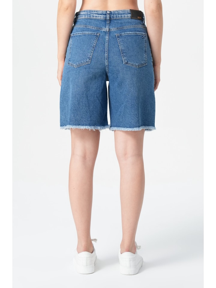 Nelly женские шорты в ослепительно-голубом цвете - летняя эффектная вещь с бахромой. Шорты Nelly ярко-голубого цвета вдохнут новую жизнь в ваш летний гардероб. Благодаря уверенному силуэту с высокой талией и модному бахромчатому подолу они сочетают в себе женственный стиль и повседневный настрой. Высококачественный деним из 99% хлопка и 1% эластана обеспечивает комфортную носку и максимальную свободу движений. Сбалансированная длина подчеркивает линию ног, а характерный ослепительно-голубой оттенок с легкими просветлениями на бедрах добавляет глубину и аутентичность образу. Тщательная работа с декоративной бахромой по подолу добавляет модный акцент, который придает любому образу свежесть летнего настроения. Универсальный стиль для солнечных дней: шорты Nelly станут вашим идеальным компаньоном для бесчисленных летних образов. Сочетайте их с повседневной рубашкой оверсайз для непринужденного пляжного отдыха или с элегантной блузкой для модного микса хай-лоу. Высокая талия с четким кроем стильно сочетается как с короткими, так и с заправленными топами. Обрезной край с бахромой придает даже минималистичным нарядам нотку стиля, а летняя цветовая гамма прекрасно гармонирует как со светлыми, так и с темными оттенками. Средняя длина обеспечивает комфортную посадку и выгодно подчеркивает ноги. Эти шорты гармонично сочетают в себе комфорт и модный внешний вид и быстро станут неотъемлемой частью вашего летнего гардероба.
