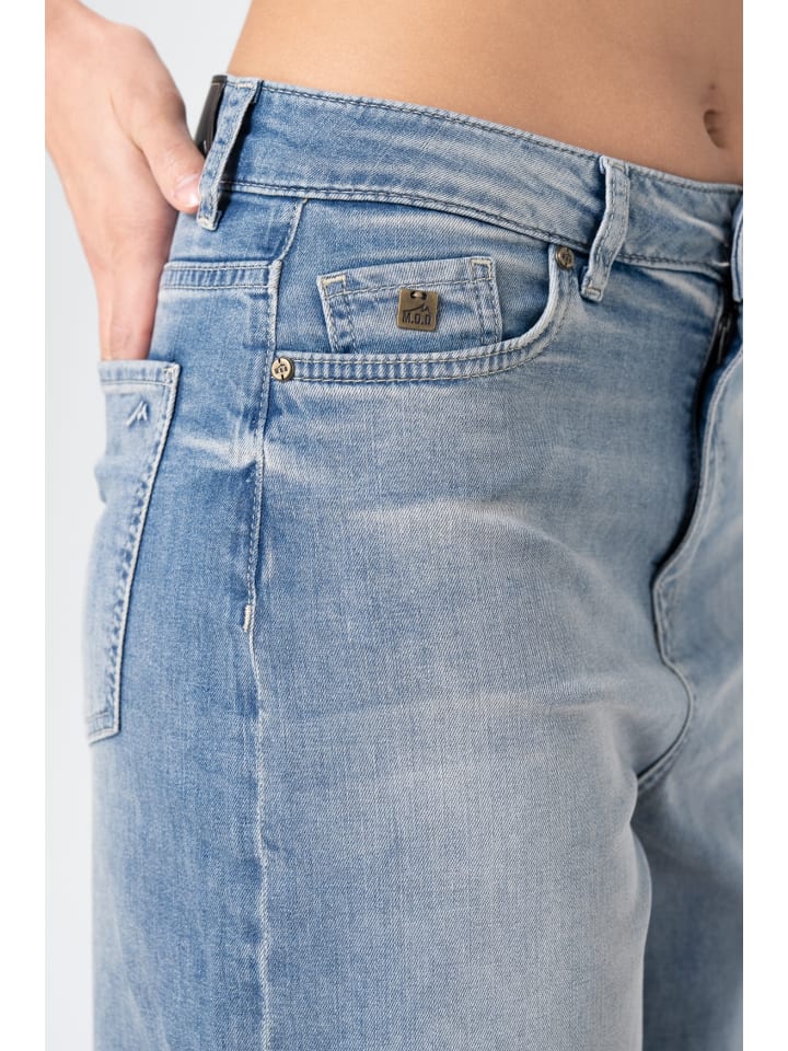Nelly женские джинсовые шорты Dream Blue - бермуды с высокой талией и бахромой по низу. Бермуды Nelly в цвете Dream Blue впечатляют своим современным кроем с высокой талией и повседневным стилем. Высококачественная смесь материалов 84% хлопка, 13% полиэстера и 3% эластана обеспечивает оптимальный комфорт и приятную свободу движений. Легкая стирка в светло-голубом тоне придает шортам летний вид и делает их особенно идеальными с белыми кроссовками. Прямой, широкий крой штанины средней длины подчеркивает любую фигуру и обеспечивает приятную циркуляцию воздуха в жаркие дни. Бахрома по низу придает дизайну стильный городской штрих и делает шорты идеальным компаньоном для ваших летних занятий. Продуманные детали Для вашего индивидуального летнего стиля: эти джинсовые шорты впечатляют своими изысканными элементами дизайна. Классические джинсовые карманы - два спереди и два сзади - предлагают практичное место для хранения ваших самых необходимых вещей. Застежка на пуговицы и шлевки для ремня позволяют индивидуально подбирать варианты стилизации с различными аксессуарами. Особая изюминка - высококачественная фирменная нашивка на спине, символизирующая типичное качество MOD. Слегка расклешенный крой создает женственный силуэт, а высокое качество изготовления гарантирует долговечность. Сочетайте шорты Dream Blue с повседневным укороченным топом, простой рубашкой или воздушной блузкой - они подойдут к множеству образов и быстро станут вашим незаменимым фаворитом на лето.