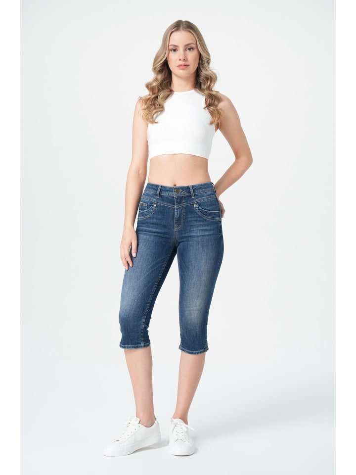 Женские джинсы-капри Rea темно-синего цвета - стильный силуэт для теплого времени года. Женские джинсы-капри Rea темно-синего цвета воплощают летнюю элегантность в современном стиле. Благодаря точной длине 3/4 они умело подчеркивают линию ног и предлагают идеальный баланс между прохладным комфортом и стильным внешним видом. Изысканный крой с небольшой завышенной талией выгодно подчеркивает фигуру и обеспечивает выгодный силуэт. Сбалансированный материал из 91% хлопка, 6% полиэстера и 3% эластана сочетает в себе приятную для кожи текстуру с оптимальным сохранением формы, обеспечивая свободу движений там, где это необходимо. Классический темно-синий цвет с нежными контрастными эффектами на бедрах придает этим джинсам-капри вневременную элегантность с городским оттенком. Универсальный стильный талант Для солнечных дней: капри Rea - это настоящий модный хамелеон для самых разных случаев. Сочетайте их с укороченным топом для создания модного летнего образа или с воздушной туникой для непринужденного пляжного стиля. Тщательно подобранная длина 3/4 идеально подчеркивает белые кроссовки и изящно подчеркивает щиколотки - модная деталь, которая мгновенно дополняет ваш образ. Насыщенный темно-синий цвет прекрасно гармонирует с яркими летними цветами и смелыми акцентами, предлагая максимальную свободу для создания образа. Продуманные пропорции делают Rea Capri идеальным спутником для активных летних дней - от прогулок по городу до вечеринки в саду или спокойного посещения кафе. Они обеспечат вам стильную прохладу и безграничный комфорт.