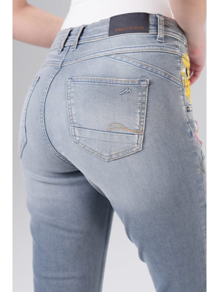 Брюки Rea High Regular Fit от MOD сочетают в себе классический джинсовый стиль и женственные акценты. Цветочные мотивы придают им особый шарм. Благодаря классическому крою и высокой талии они обеспечивают комфорт и подчеркивают фигуру. Идеально подходят для создания повседневных образов с изюминкой. Рост нашей модели - 1,71 м, размер 27/S.