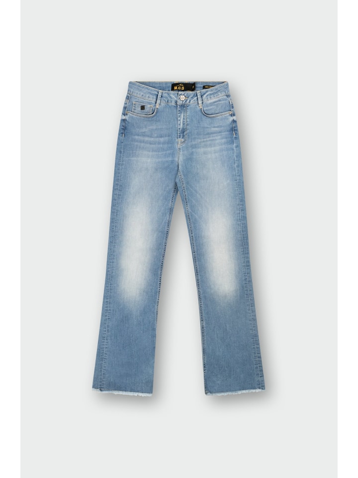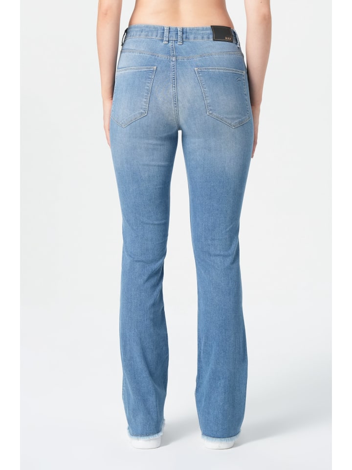 Джинсы Sina женские Bootcut в цвете Dainty Blue - классический силуэт и современная легкость. Джинсы Sina Bootcut в цвете Dainty Blue сочетают в себе вневременную элегантность и женственные линии на любой случай. Их гармоничный крой - узкий в бедрах и слегка расклешенный от колена - создает идеально сбалансированный силуэт с эффектом удлинения ног. Высококачественный деним из 82% хлопка, 15% полиэстера и 3% эластана обеспечивает оптимальный комфорт, приятную свободу движений и надежное сохранение формы. Прозрачная синяя стирка с легким осветлением на бедрах придает этим джинсам свежий, современный вид с универсальным стилевым потенциалом. Стильная универсальность на любой случай. Джинсы Sina Bootcut впечатляют своей исключительной адаптивностью к различным случаям и образам. Классический крой bootcut идеально сочетается с каблуками, которые элегантно демонстрируются под слегка расклешенными штанинами, или с кроссовками для повседневного образа. Сдержанный оттенок ткани создает идеальную основу для самых разных образов - от повседневного с футболкой и толстовкой до элегантного с блузкой и блейзером. Благодаря содержанию эластана джинсы сохраняют форму даже при длительной носке и обеспечивают комфорт в течение всего дня. С брюками Sina Bootcut в цвете Dainty Blue вы приобретете незаменимую вещь, которая станет неотъемлемой частью вашего гардероба благодаря своему удобному крою и универсальности.