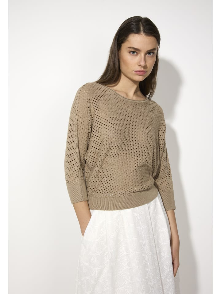 Этот свободный свитер от MORE \ u0026 MORE с летним ажурным вязаным узором и рукавами длиной 3/4 одинаково хорошо смотрится как с повседневными джинсами, так и с классическими деловыми брюками, но его также можно носить с струящейся юбкой.