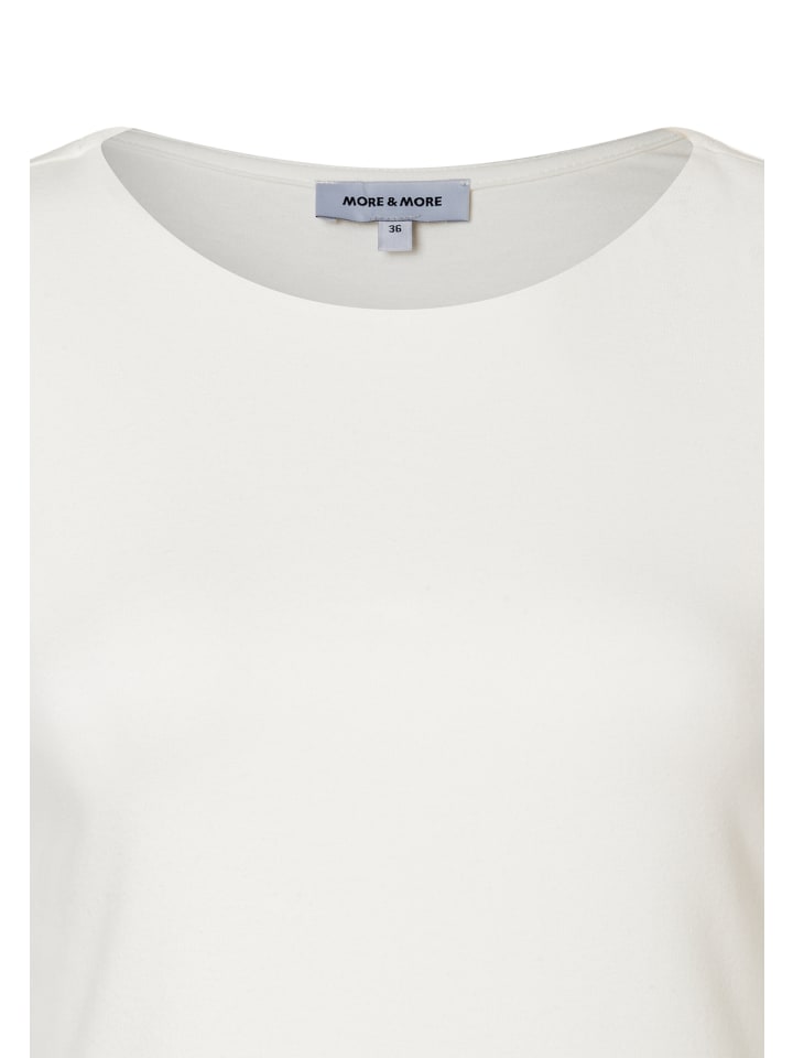 Базовая рубашка с длинными рукавами от MORE \ u0026 MORE и вырезом лодочка - отличная универсальная вещь, которую можно комбинировать с разными вариантами, и она обязательно должна быть в любом гардеробе. Рубашку можно носить как самостоятельную вещь с юбкой или брюками, так и под кардиганом или блейзером.