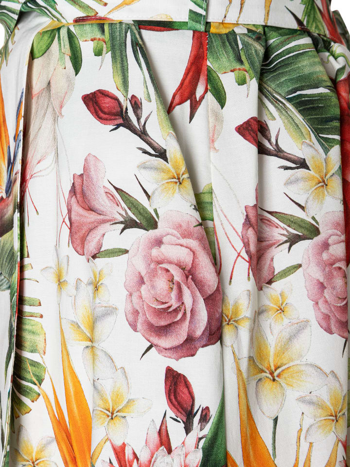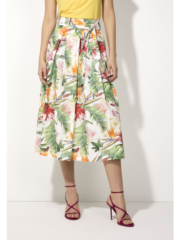 Эту широкую расклешенную юбку из хлопка MORE \ u0026 MORE с красочным цветочным принтом на белом фоне можно носить как повседневно с футболкой и кроссовками, так и более элегантно с подходящей блузкой и каблуками.