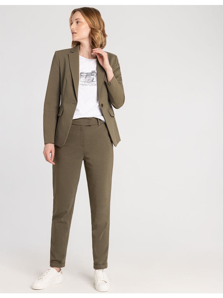 Этот приталенный блейзер от MORE \ u0026 MORE цвета хаки создаст современный деловой образ с подходящими брюками. Его также можно носить с выцветшими джинсами и полосатой рубашкой.