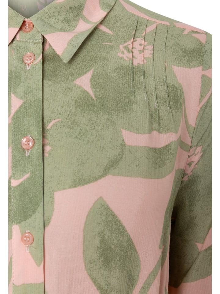 Это платье с принтом на пуговицах от MORE \ u0026 MORE с оливково-зеленым цветочным рисунком на абрикосовом фоне можно носить с джинсовой курткой и кроссовками для создания повседневного летнего образа.